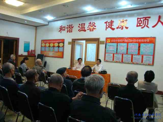 院长喻新安(右一)为我院离退休老干部作“中原经济区建设”专题报告 |