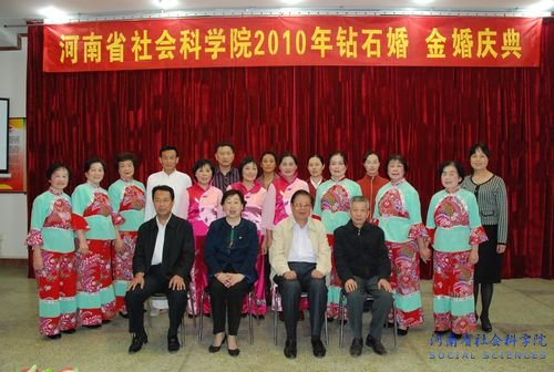 讲话结束后,大会放映了院信息中心制作的钻石婚、金婚夫妇合影短片。张相霓老师畅谈了金婚感悟、张清华老师、卢连章老师各自作诗一首纪念钻石婚、金婚。图书馆、监察室、部分离退休职工为大家表演了文艺节目。演出结束后院领导与全体演出人员合影留念,庆典大会圆满结束。
