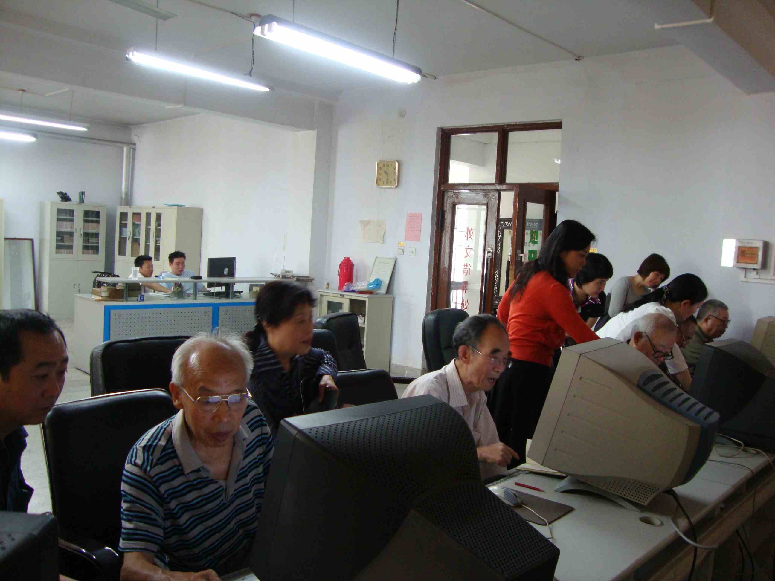 电脑知识提高班5月17日在图书馆电子阅览室正式开班。图书馆信息中心结合老同志的特点,组织业务骨干积极备课,利用投影仪等教学仪器,授课生动活泼,重点问题反复讲解,一对一进行辅导,使每个老同志基本掌握操作步骤。老同志的学习热情也很高,培训班结束时,大家一致表示,这次提高班虽然时间短,但收获较大,电脑水平有很大提高。并对此期培训班组织安排表示非常满意。